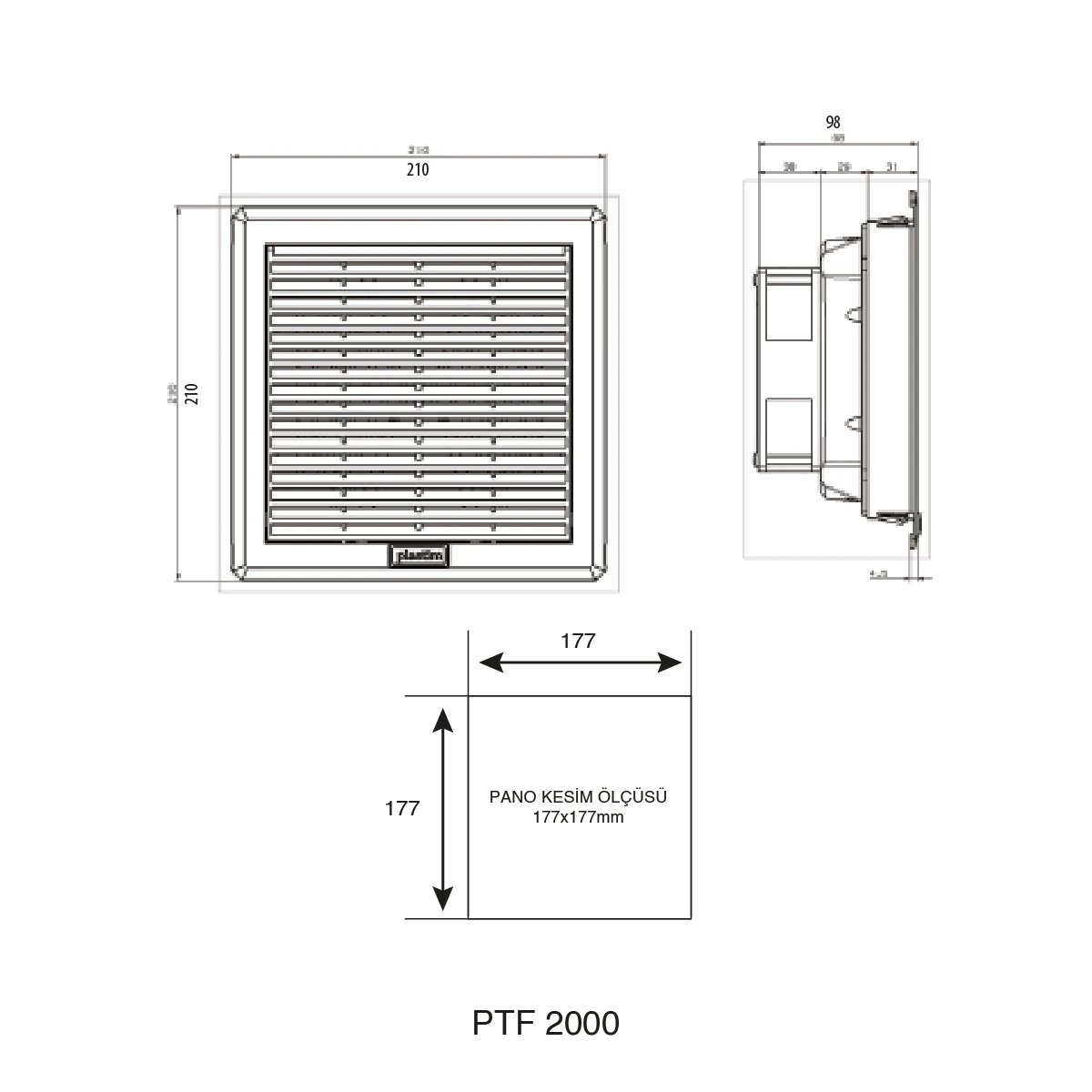 Plastim PTF2000 filtreli fan, yüksek hava akışı kapasitesi ile endüstriyel ve ticari alanlarda etkili bir hava sirkülasyonu sağlar. IP54 koruma derecesi, fanın toz ve suya karşı dayanıklılığını artırarak uzun ömürlü kullanım sunar. Düşük gürültü seviyesi, sessiz çalışma gerektiren ortamlarda idealdir.